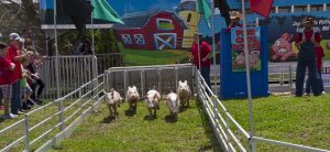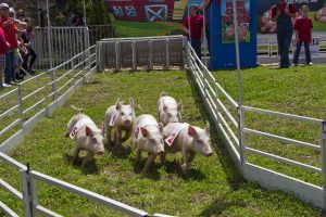 Arriving in Charleston, we drove what may have been the parade route, many lovely houses with nice landscaping along there. Finally found a place to park and walked a block or so to the vendor tents. It’s a typical small town festival, but actually a little bigger than I had thought it would be. Lots of the usual stuff. The different thing was…..Pig Racing!