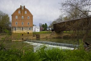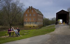 Then we moved on to Bollinger Mill State Historic Site. What a grand place! 4 stories, 2 of those brick, a covered bridge and a little waterfall!